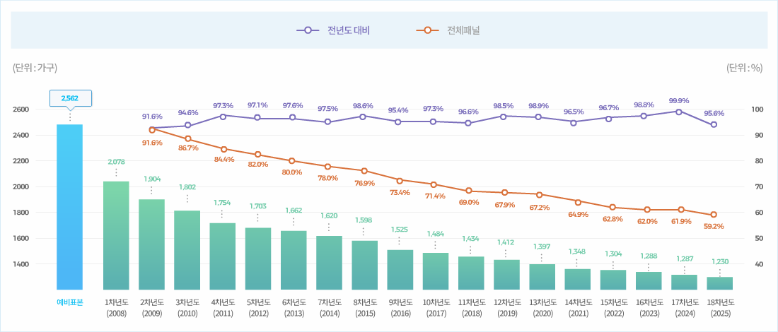 | 18차년도 (2025) | 1,230 가구 | 59.2% | 95.6% |